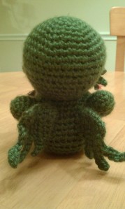 I’ve finally finished the Cthulhu that I had started before the break. As a sea monster, Cthulhu has a fondness for the beach. It’s no surprise that he likes Hawaiian shirts, though he likes them best with a little soy sauce…