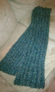 I finished this scarf a few weeks ago and never got around to posting about it. This is the first knitting project I have ever completed, and I must say it’s as warm and comfy as it looks. I learned a lot doing this project, most notably how to pick up dropped stitches. 🙂